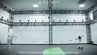 Fully autonomous PHYBOT C1 playing badminton against humans