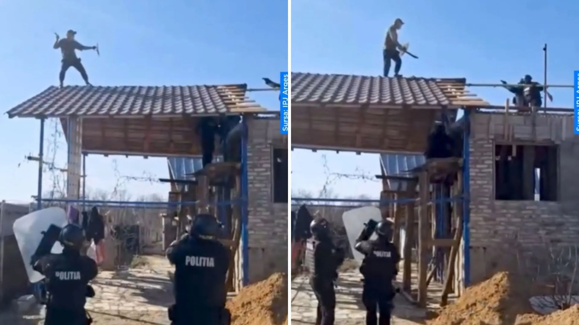 /VIDEO/ Duel ca în filme în România: Momentul în care un bărbat înarmat cu sabie și scut atacă polițiștii https://tv8.md/2026/03/15/...