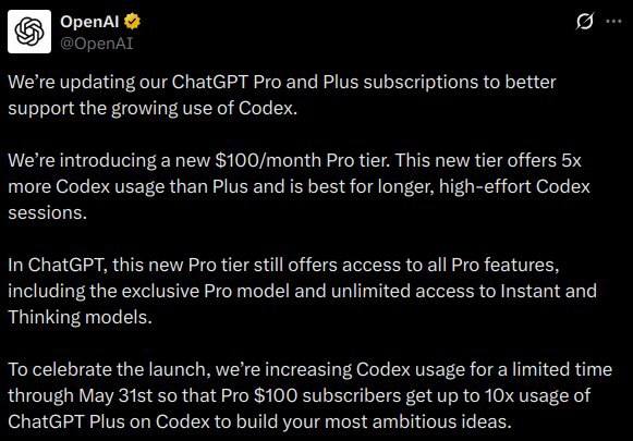 📢 OpenAI has released the ChatGPT Pro subscription for $100