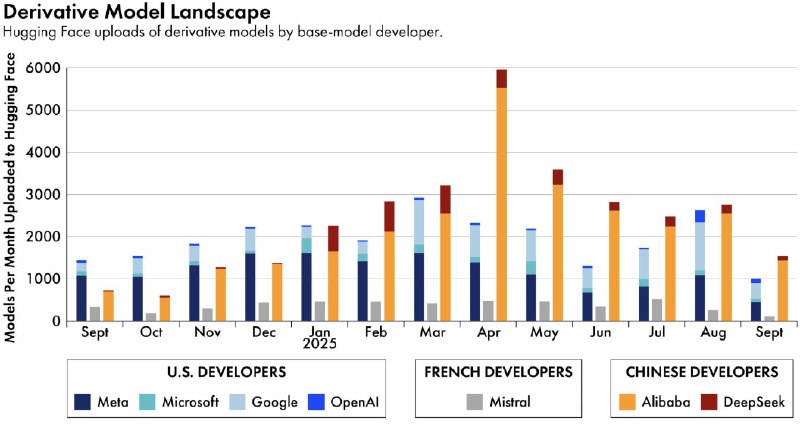 And derivative models (finetuned or otherwise modified models) built on Chinese base foundations now absolutely exceed those built on US and European models.