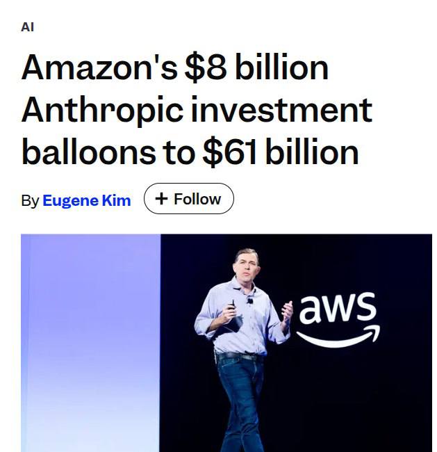 💰 Amazon’s investment in Anthropic has risen to about $60.6 billion, with $12.8 billion in gains recognized and another $15 billion expected in Q1 2026.